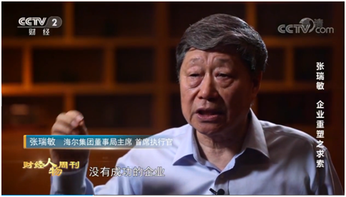 7月23日晚,央视二套《财经人物周刊》播出《张瑞敏:企业重塑之求索》,带领观众走近海尔集团董事局主席、首席执行官张瑞敏,零距离直击“人单合一”模式,探索海尔的凤凰涅槃重生之路。