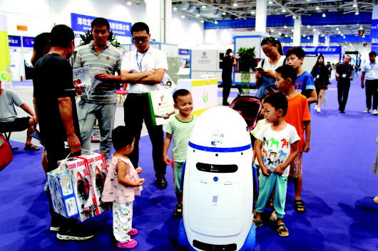 几位小朋友在与智能机器人对话。
