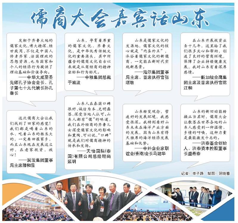 弘扬大儒商道,至诚赢得天下。“让我们同心同向,并肩前行,合作共赢,一起创造更加美好的未来!”会上,省委书记刘家义向全球儒商发出诚挚邀请,持续引发各界热烈反响。大家表示,站在新起点的山东,将面向全球经济发展打开崭新的机遇大门。